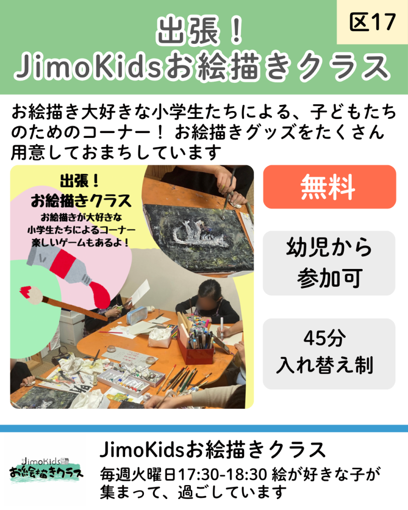 ・出張!JimoKidsお絵描きクラス(JimoKidsお絵描きクラス、協力:ターナー色彩株式会社×創形美術学校)