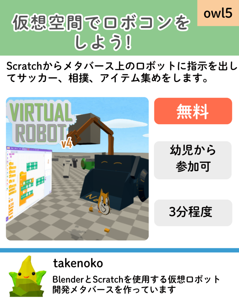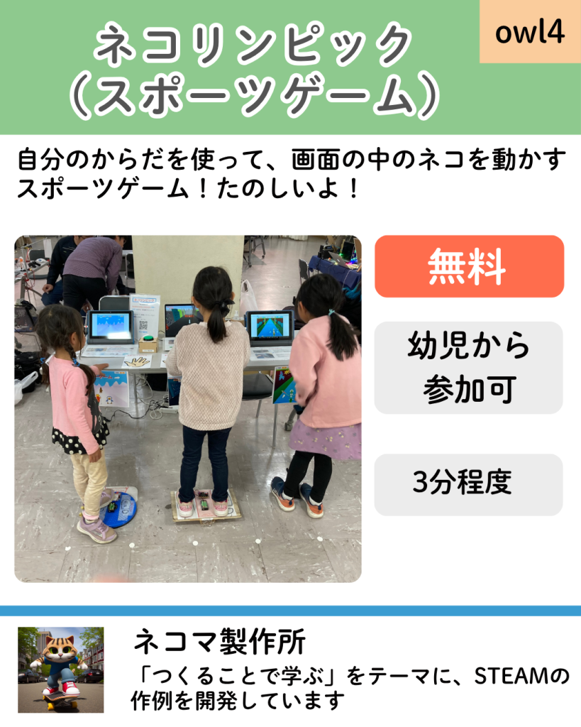 対象:未就学児(3歳以上推奨)~小中学生、付き添いの大人