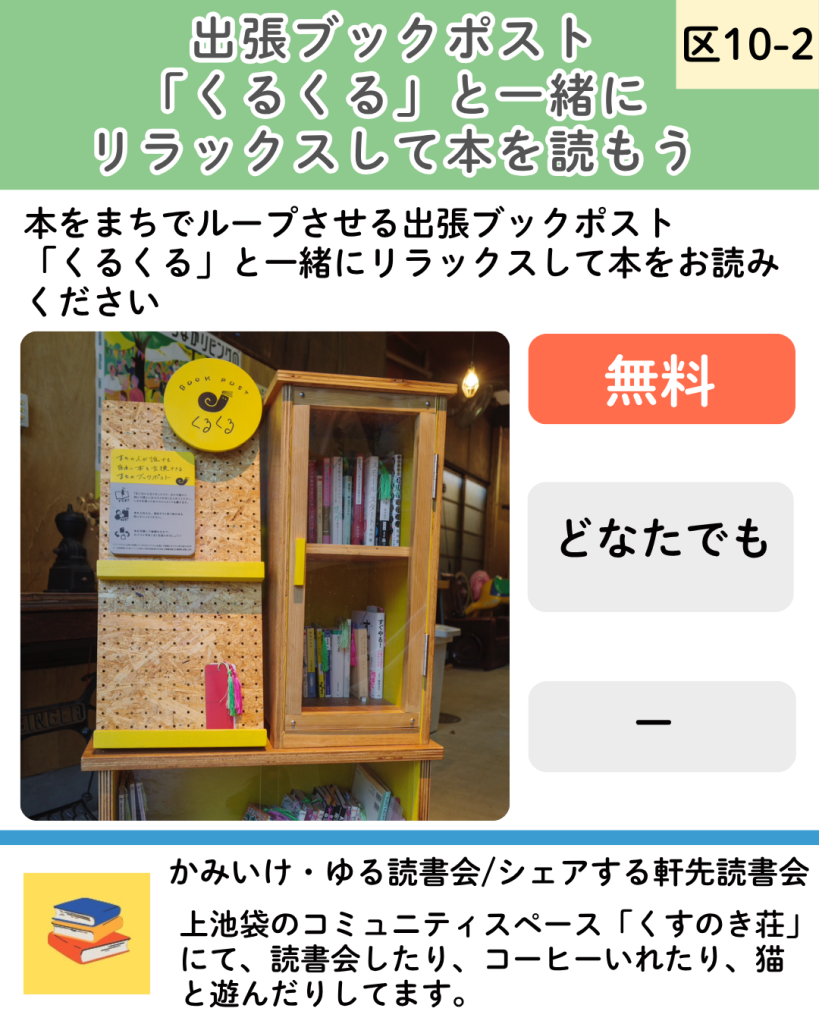 -出張ブックポスト「くるくる」と一緒にリラックスして本を読もう(かみいけ・ゆる読書会/シェアする軒先読書会)