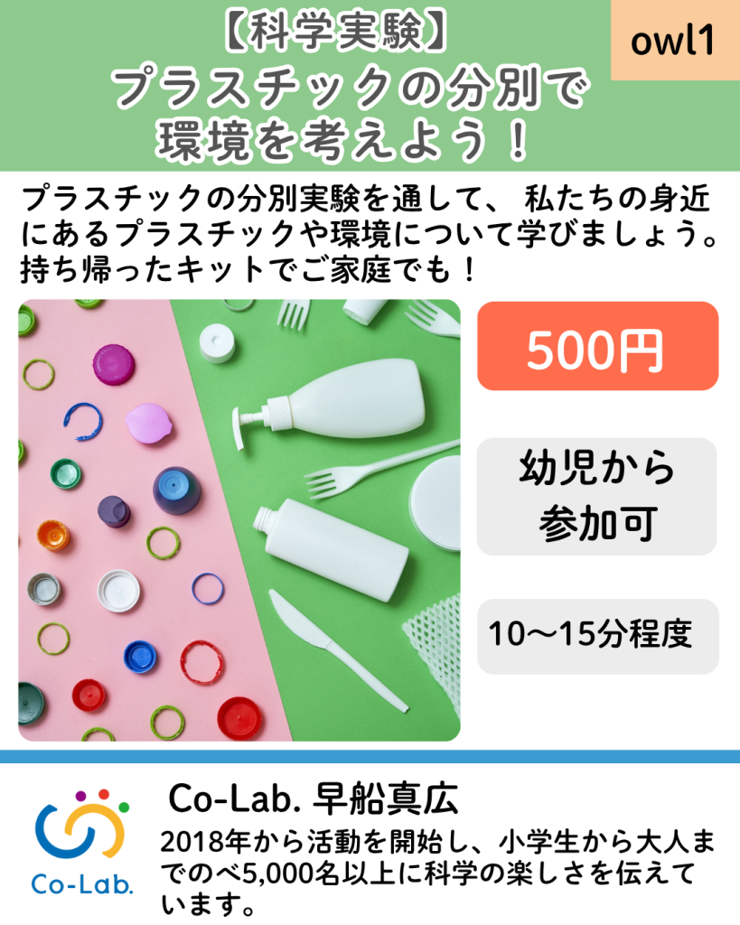・【科学実験】プラスチックの分別で、環境を考えよう!(Co-Lab.早船真広)