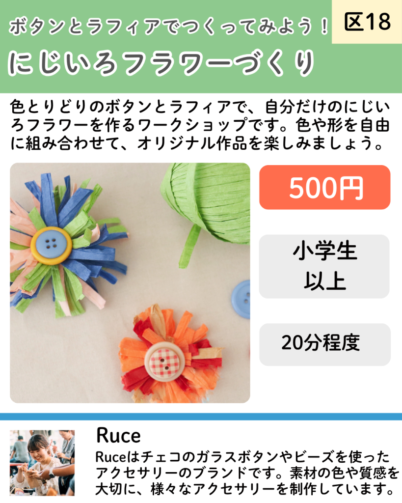 ・ボタンとラフィアでつくってみよう!にじいろフラワーづくり(Ruce)