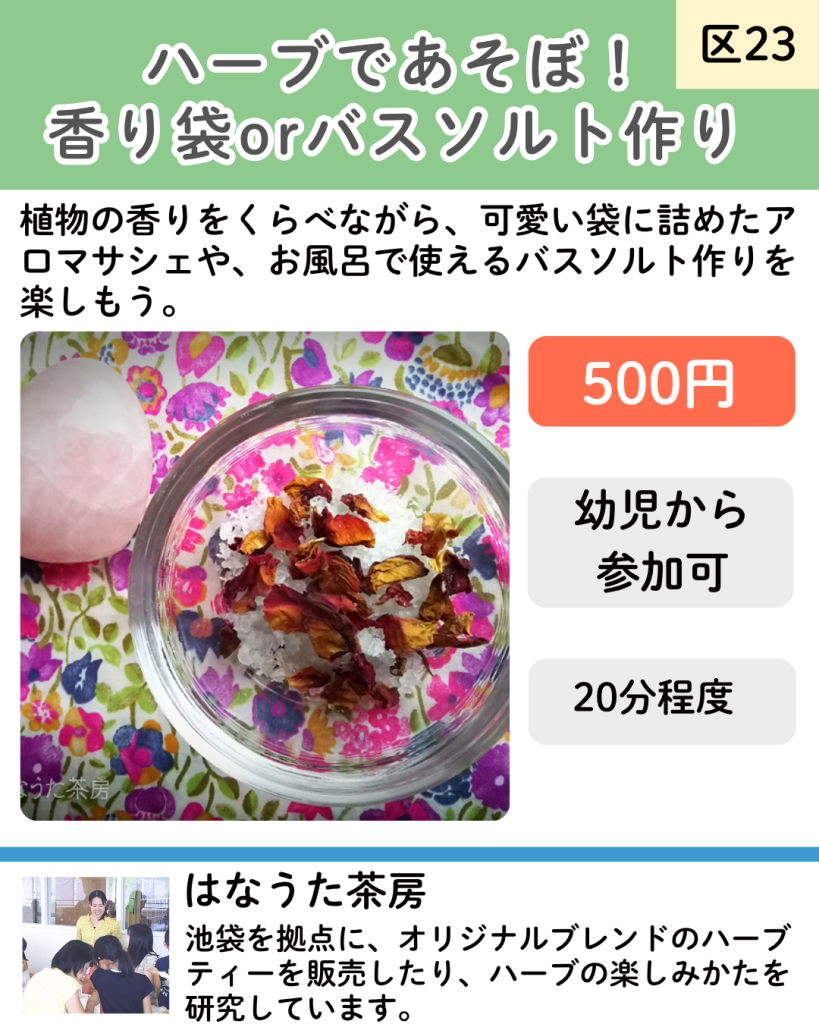 ・ハーブであそぼ!香り袋orバスソルト作り(はなうた茶房)