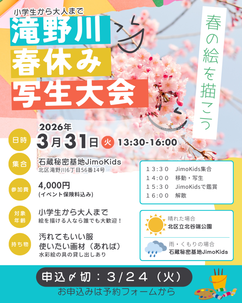 3月31日(火) 13:30〜16:00 滝野川春休み写生大会🌸春の絵を描こう!